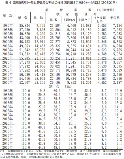 ・データ根拠: 厚生労働省所管の国立社会保障・人口問題研究所「日本の世帯数の将来推計」によると、単独世帯は2015年の34.5%から、2025年に40.1%、2050年には44.3%へと増加すると予測されています。