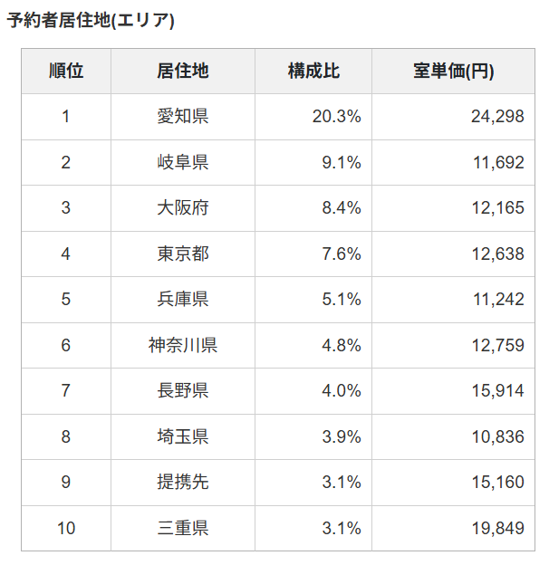 楽天トラベルの宿カルテより「予約者居住地」を見ることもできるので、一度確認してみるのもよいでしょう。